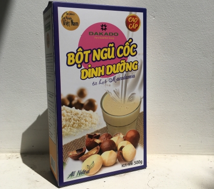DAKADO nutrition powder make by drying selected macadamia nuts, walnut, green bean, lotus nut, soya bean... suitable for children and adults who need add more nutrition for body.